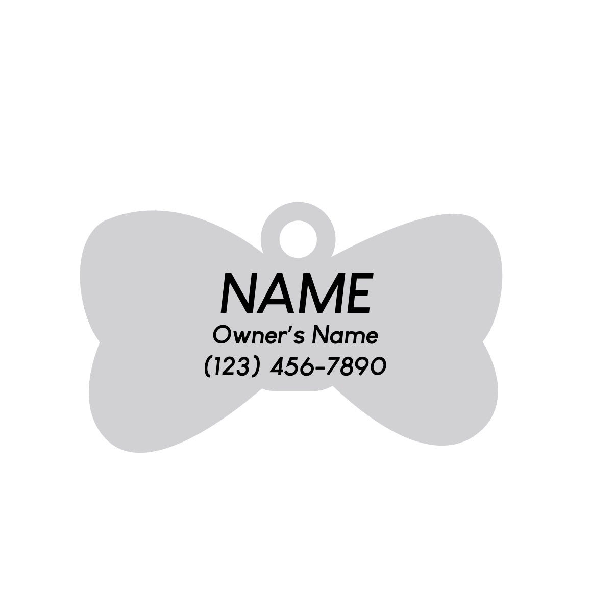 The Bowtie Pet ID Tag is here to add the finishing touch to any spiffy ‘fit. Maybe your are trying to look dashing down the aisle on your owners wedding day, or your dressing up for a family photo, or its just Tuesday after 5pm and that’s just your vibe, sport the Bowtie Pet ID tag so you look sharp. Free engraving! Add your dog’s name to one of our custom dog tags for dogs! Each pet ID tag can be personalized with up to four lines of text on the backside. Please include engraving details in the text box and/or order notes section. Our precision laser-engraving is guaranteed to last, so your pup’s way home will never rub off. And its all engraved and shipped in the USA. Make sure to include your engraving details in the ‘Type Pet ID Information Here’ text box. (pet’s name, owner’s name, phone number) Dimensions: 1.37 Inch x 0.81 Inch (35 mm x 20.79 mm) Material: Brass, Silver Plating, and Hard Enamel. Please allow 4–5 business days of production time before shipping. Once shipped, U.S. orders usually arrive in 3–5 business days.