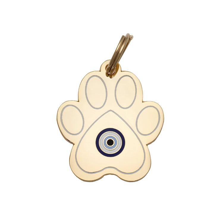 Wearing the ‘Evil Eye’ Pet ID Tag can guard your dog from all the terrible ills of the world including squirrels, mailmen, and whatever it is he barks at while you’re sleeping. Just imagine your little Fluffy or Fido strutting around with their own personal force field, ready to deflect any negative energy that comes their way. Plus, with an evil eye dog tag, you can finally put those worried looks from your neighbors to rest. They’ll know that your pet is not just any ordinary pooch, but a veritable guardian angel. And even if the evil eye only brings you peace of mind, that’s a sure fire way to keep the evil thoughts out! Those can be the trickiest ones to get rid of. Shield your pup from wicked with this Evil Eye dog tag. They’ll thank you for it. Free engraving! Add your dog’s name to one of our custom dog tags for dogs! Each pet ID tag can be personalized with up to four lines of text on the backside. Please include engraving details in the text box and/or order notes section. Our precision laser-engraving is guaranteed to last, so your pup’s way home will never rub off. And its all engraved and shipped in the USA. Make sure to include your engraving details in the ‘Type Pet ID Information Here’ text box. (pet’s name, owner’s name, phone number) Dimensions: 1.1 Inch x 1.27 Inch (27.99mm x 32.19mm) Material: Brass, Gold Plating, and Hard Enamel. Please allow 4–5 business days of production time before shipping. Once shipped, U.S. orders usually arrive in 3–5 business days.