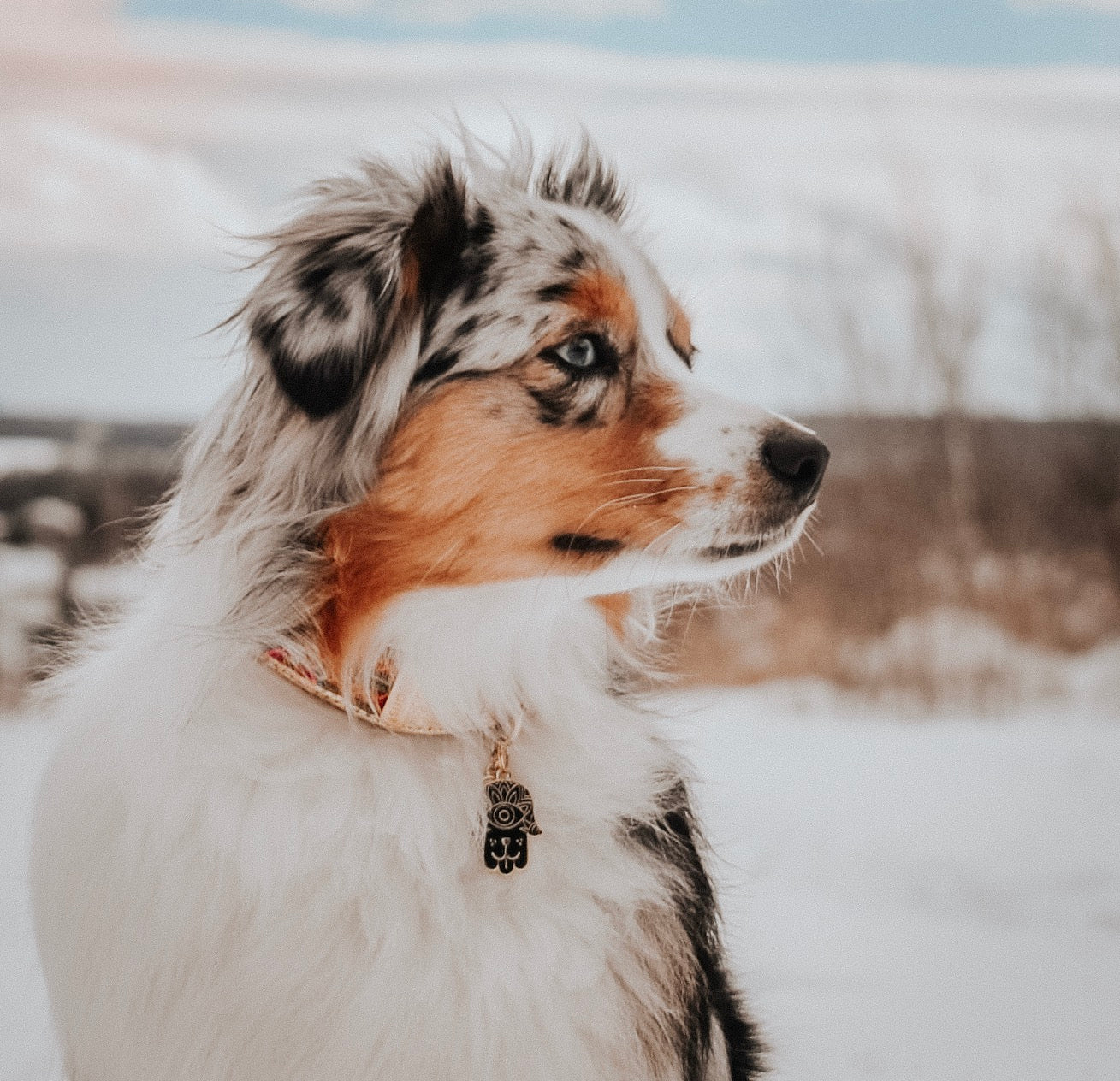 Keeps away bad spirits while bringing in happiness, good luck, and dog kisses with the dog faced ‘Hamsa’ Pet ID Tag in gold and black. The Hamsa is ancient Middle Eastern symbol for luck and protection that has been adopted by cultures all over the world. People put Hamsas everywhere including near doors and hanging from rear view mirrors. We thought we should place it around the neck of the one we love most. Because what would we do without our best fur-buddy? Protect you pooch with the ‘Hamsa’ Pet ID Tag in gold and black. Available in black and white with gold or silver plating so your pup’s style is always fresh. Free engraving! Add your dog’s name to one of our custom dog tags for dogs! Each pet ID tag can be personalized with up to four lines of text on the backside. Please include engraving details in the text box and/or order notes section. Our precision laser-engraving is guaranteed to last, so your pup’s way home will never rub off. And its all engraved and shipped in the USA. Make sure to include your engraving details in the ‘Type Pet ID Information Here’ text box. (pet’s name, owner’s name, phone number) Dimensions: 1 inch x 1.25 inch (25.8 mm x 31.75 mm) Material: Brass, Gold Plating, and Soft Enamel Please allow 4–5 business days of production time before shipping. Once shipped, U.S. orders usually arrive in 3–5 business days.