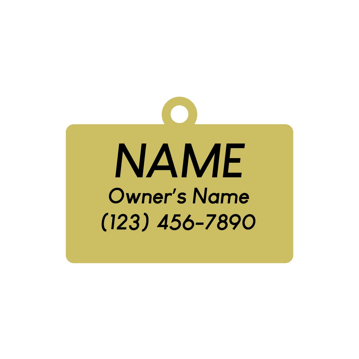 Is your dog the new pup on the block? Are they having a hard time getting out there and making friends? Advice from Mama: always carry gum. You’ll always make a friend when you pop out a fresh pack and someone tries to bum a piece. They may be moochers but moochers need friends too. And you’re in no position to be too picky. Don’t be shy! Break the ice and help your dog introduce themselves with this “Hello, My Name is” collar charm and pet ID tag in gold. Available in gold or silver plating so your pup’s style is always fresh. Free engraving! Add your dog’s name to one of our custom dog tags for dogs! Each pet ID tag can be personalized with up to four lines of text on the backside. Please include engraving details in the text box and/or order notes section. Our precision laser-engraving is guaranteed to last, so your pup’s way home will never rub off. And its all engraved and shipped in the USA. Make sure to include your engraving details in the ‘Type Pet ID Information Here’ text box. (pet’s name, owner’s name, phone number) Dimensions: 1.125 Inch x 0.76 Inch (31.75mm x 19.4mm) Material: Brass, Gold Plating, and Hard Enamel. Please allow 4–5 business days of production time before shipping. Once shipped, U.S. orders usually arrive in 3–5 business days.