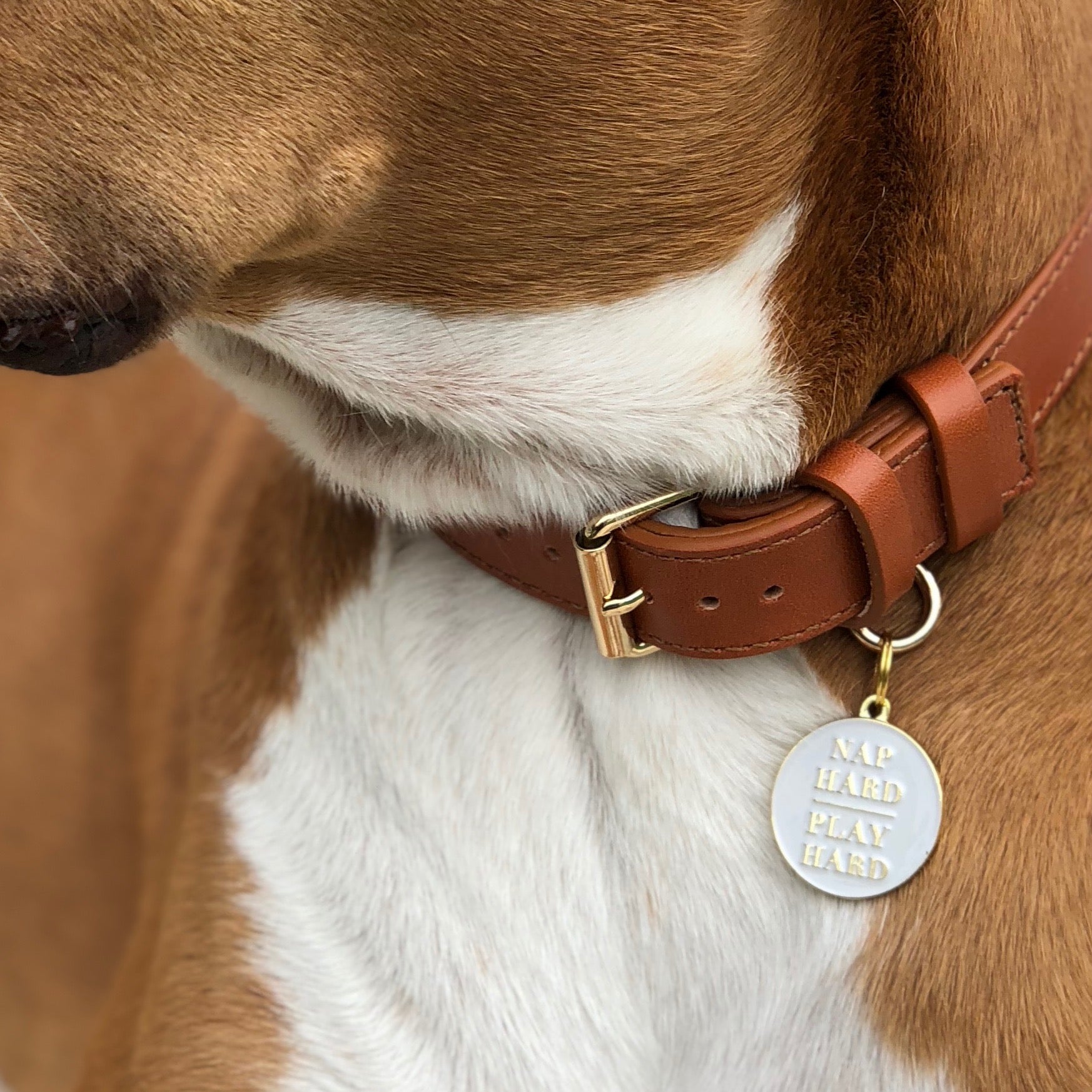 The life of a dog is like your life between happy hour on Friday until you walk into work on Sunday morning. Nap Hard, Play Hard. This ‘Nap Hard, Play Hard’ Pet ID Tag pays tribute to these wise words to live by. Sleeping in on the weekend, brunching with a bottomless mimosa attached to your hand, coming home and crashing, then partying all night ‘til you do it all again tomorrow. This is the good life. And your dog lives it every single day. Wake up, nap, chase squirrels, nap again, zoomies, nap hard, mommy comes home, nap, dog park, nap! Your dog literally doesn’t know how not to live this life. They really are an inspiration. Inspire the world with the ‘Nap Hard Play Hard’ Pet ID Tag. Free engraving! Add your dog’s name to one of our custom dog tags for dogs! Each pet ID tag can be personalized with up to four lines of text on the backside. Please include engraving details in the text box and/or order notes section. Our precision laser-engraving is guaranteed to last, so your pup’s way home will never rub off. And its all engraved and shipped in the USA. Make sure to include your engraving details in the ‘Type Pet ID Information Here’ text box. (pet’s name, owner’s name, phone number) Dimensions: 1.125 Inch diameter (28.58mm) Material: Brass, Gold Plating, and Soft Enamel Please allow 4–5 business days of production time before shipping. Once shipped, U.S. orders usually arrive in 3–5 business days.