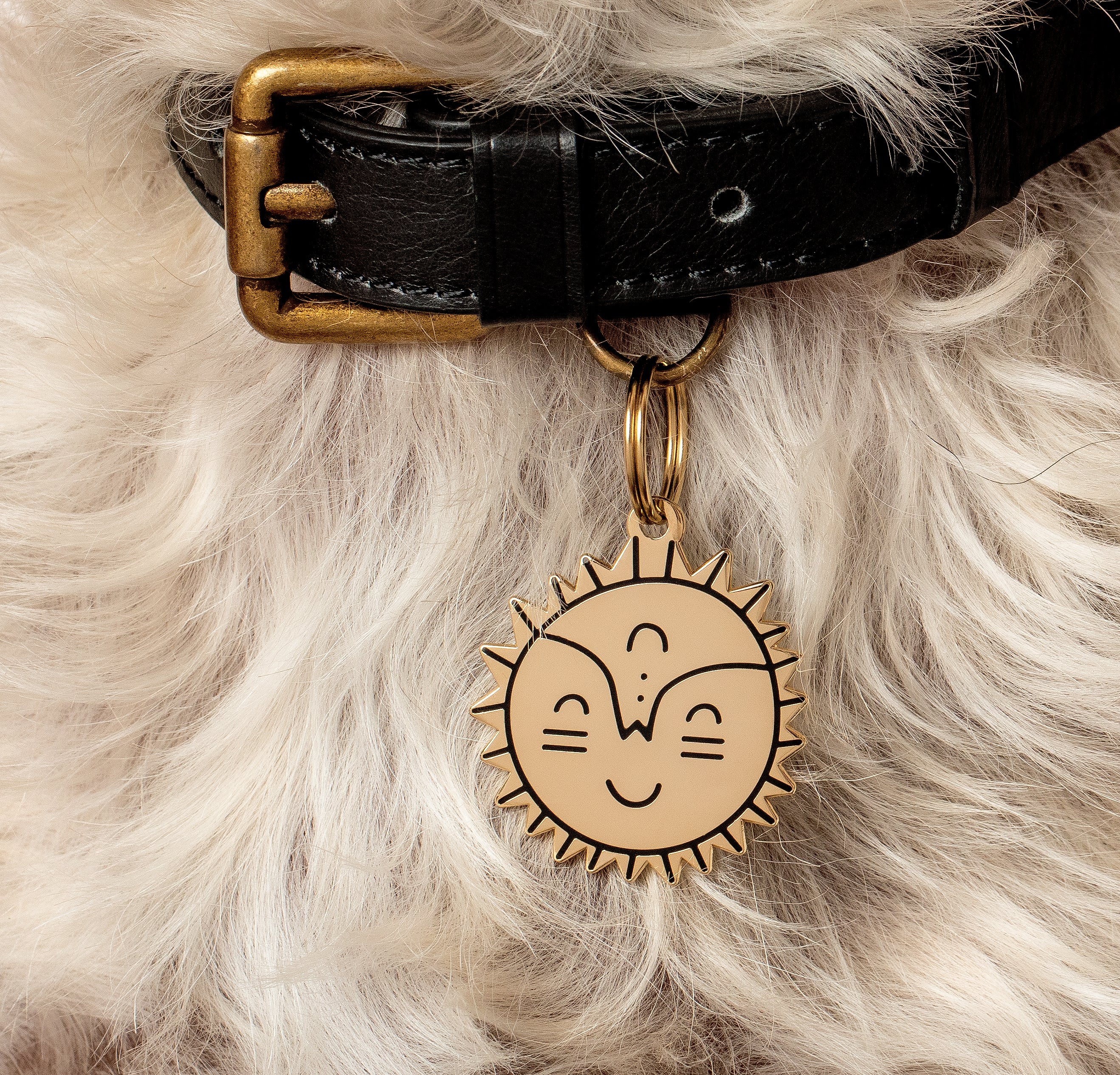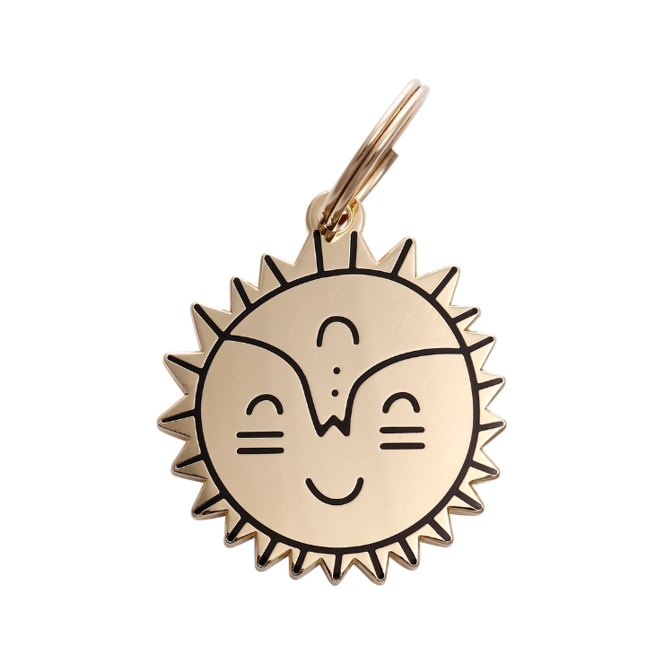 A day without our dogs is a like a day without the sun. We need their bright and shinning personalities every day to sustain us and give us life! Or we’ll just wilt and wither away. That’s what the doctor says. Brighten up your dog days with the Smiling Sun Pet ID Tag. Free engraving! Add your dog’s name to one of our custom dog tags for dogs! Each pet ID tag can be personalized with up to four lines of text on the backside. Please include engraving details in the text box and/or order notes section. Our precision laser-engraving is guaranteed to last, so your pup’s way home will never rub off. And its all engraved and shipped in the USA. Make sure to include your engraving details in the ‘Type Pet ID Information Here’ text box. (pet’s name, owner’s name, phone number) Dimensions: 1.1 Inch x 1.27 Inch (28.06 mm x 32.33 mm) Material: Brass, Gold Plating, and Hard Enamel. Please allow 4–5 business days of production time before shipping. Once shipped, U.S. orders usually arrive in 3–5 business days.