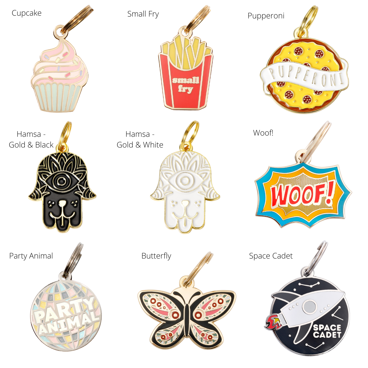 A new day deserves a new look—keep ‘em guessing! Buy 2 ID Tags and get 20% off! Get one to match for your keys or backpack! Free engraving! Add your dog’s name to one of our custom dog tags for dogs! Each pet ID tag can be personalized with up to four lines of text on the backside. Please include engraving details in the text box and/or order notes section. Our precision laser-engraving is guaranteed to last, so your pup’s way home will never rub off. And its all engraved and shipped in the USA. Make sure to include your engraving details in the ‘Type Pet ID Information Here’ text box. (pet’s name, owner’s name, phone number) Material: Brass, Colored Plating, and Hard/Soft Enamel. Please allow 4–5 business days of production time before shipping. Once shipped, U.S. orders usually arrive in 3–5 business days. *For ‘Hello My Name is’ Pet ID Tags, please include backside engraving details.