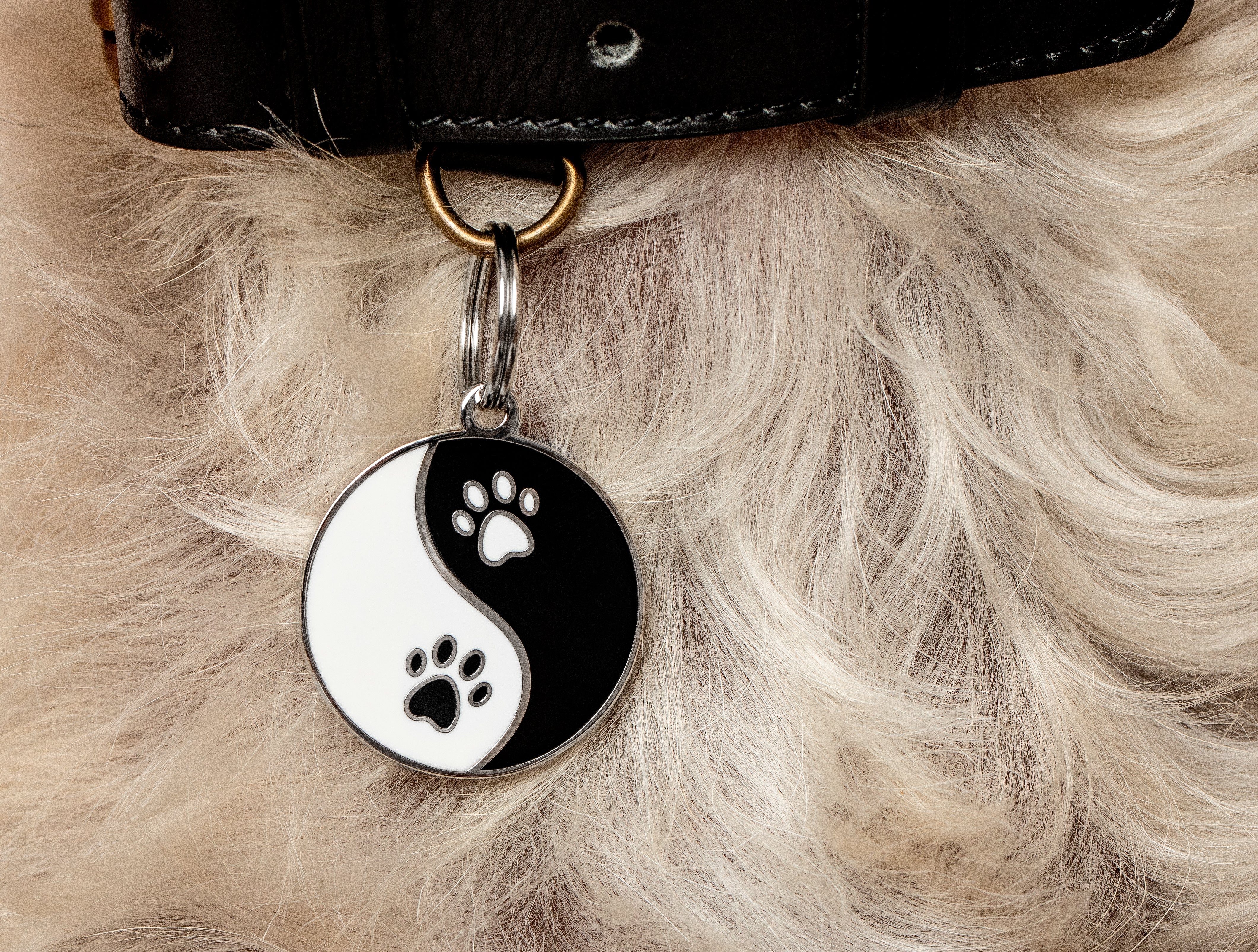 The Yin Yang Pet ID Tag is an ode to the ancient Chinese symbol for dualism and opposites coexisting. Dogs and mailmen can live in the same world. So long as those pesky mailmen get off of my lawn! Keep it moving! Peace and harmony. See! Dogs totally get it. The Yin Yang Pet ID Tag celebrates the balance our pets bring into our lives. Free engraving! Add your dog’s name to one of our custom dog tags for dogs! Each pet ID tag can be personalized with up to four lines of text on the backside. Please include engraving details in the text box and/or order notes section. Our precision laser-engraving is guaranteed to last, so your pup’s way home will never rub off. And its all engraved and shipped in the USA. Make sure to include your engraving details in the ‘Type Pet ID Information Here’ text box. (pet’s name, owner’s name, phone number) Dimensions: 1.125 Inch diameter (28.58mm) Material: Brass, Silver Plating, and Hard Enamel. Please allow 4–5 business days of production time before shipping. Once shipped, U.S. orders usually arrive in 3–5 business days.